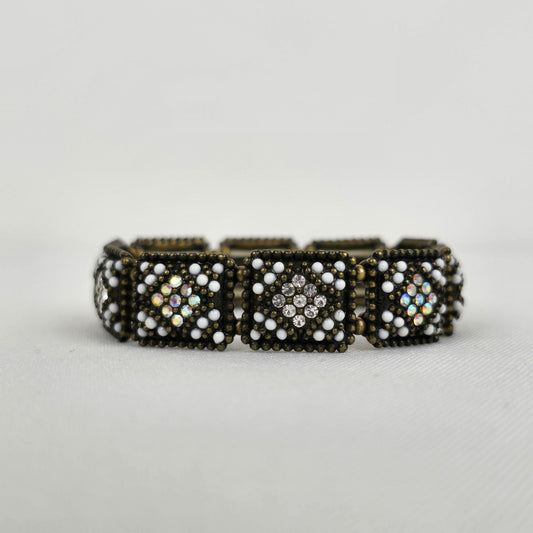 Heidi Daus Golden Faux Pearl Aqua Garnet Topaz Rhinestone Bangle Bracelet