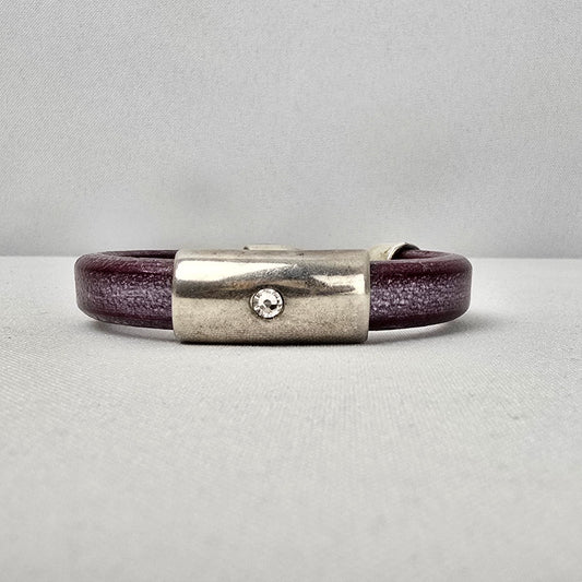 Sterling Silver Crystal Stud Purple Leather Bracelet