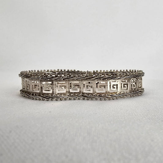 Vintage 925 Sterling Silver Maze Pattern Link Bracelet With Safety Chain