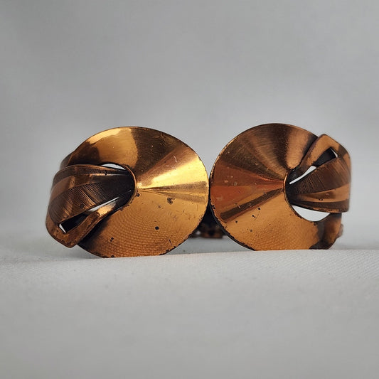 Vintage Made In Italy Gold Tone Bronze Leather Hinge Bracelet