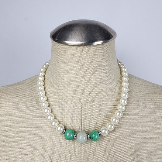 Faux Pearl Green Natural Stone Beaded Necklace Bracelet Set