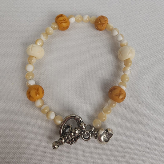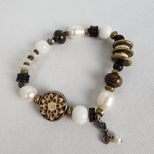 Silpada Pearl Bronzite Howlite Brass Sterling Silver Stretch Bracelet