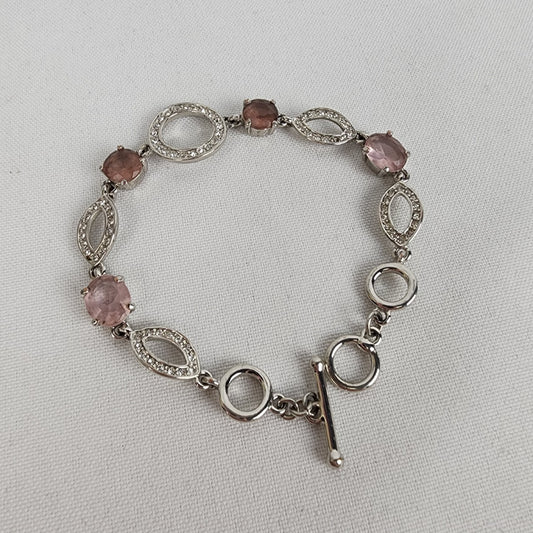 Silver Tone Pink Stone Chain Toggle Bracelet