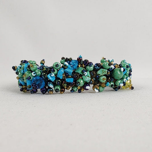 Green Natural Stone Chip Stone Beaded Stretch Bracelet
