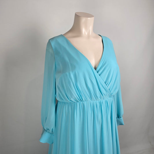 Gather & Gown Blue Long Flowey Sleeve Wrap Gown Size 28 Style Faith