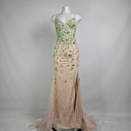 Colors Blush Floral Sequined Eventwear Gown Size 4 Style 3447