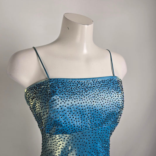 Intrigue Blue Crystal Beaded Top Grad Event Gown Size 12