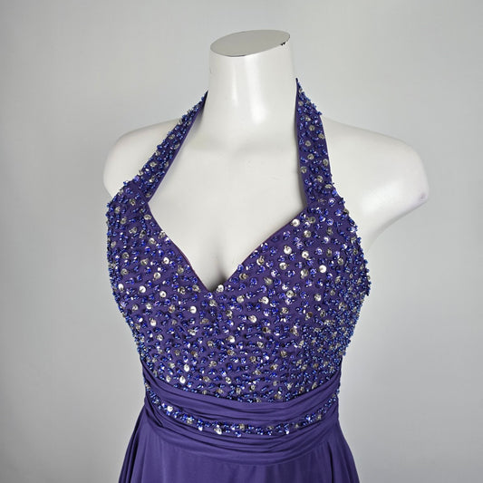 JJs House Purple Beaded Sequined Halter Event Gown Size S