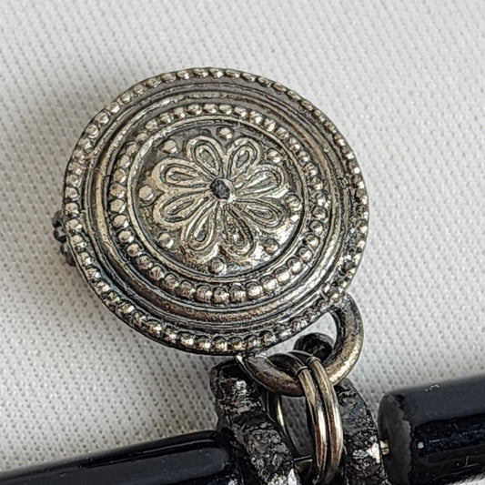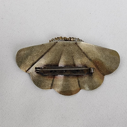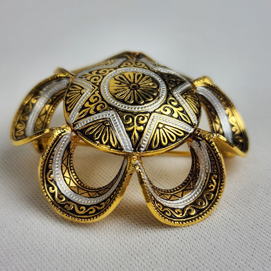 Vintage SP Damascene Black & Gold Flower Brooch