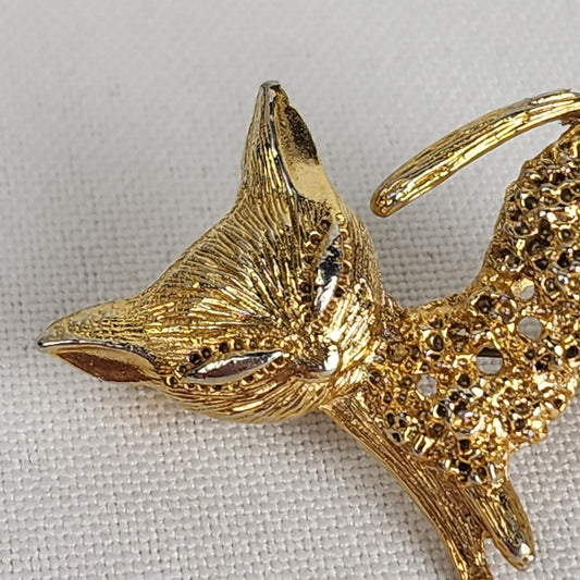 Vintage Gold Tone Cat Brooch