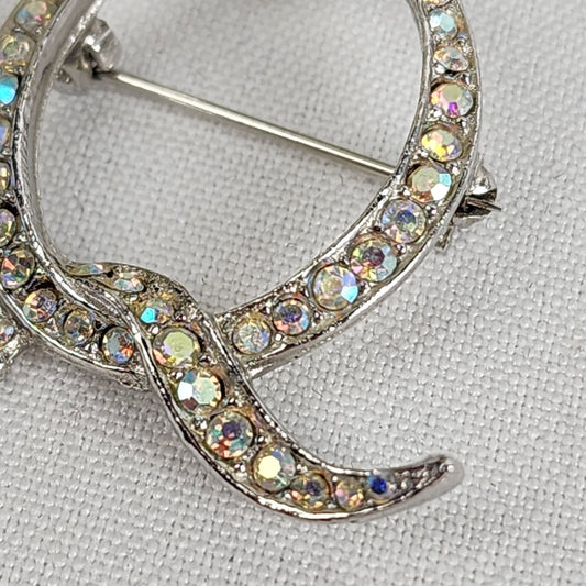 Vintage AB Rhinestone Silver Initial Q Brooch