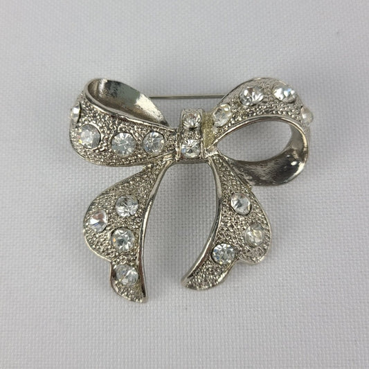 Silver Rhinestone Bow Brooch