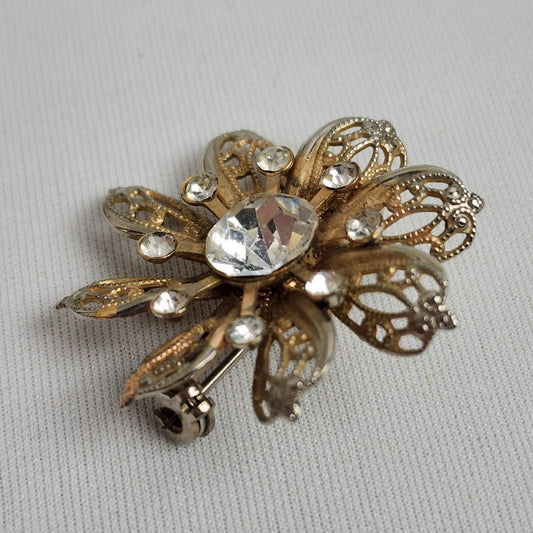 Vintage Crystal Flower Brooch Silver & Gold Tone