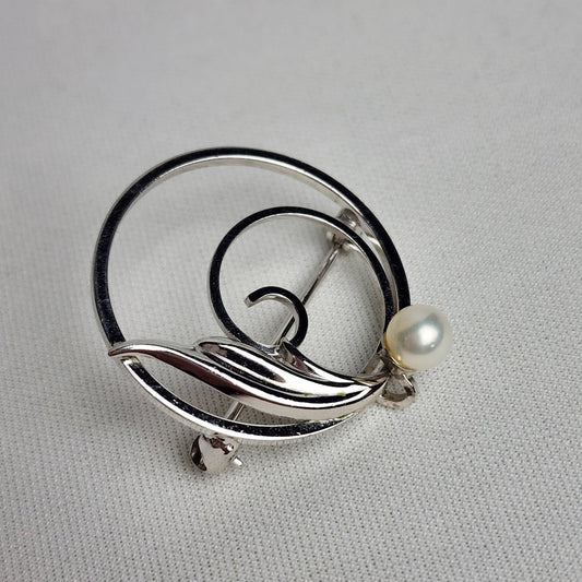 DCE Douglas C Eaton 14kt GF Pearl Silver Tone Brooch