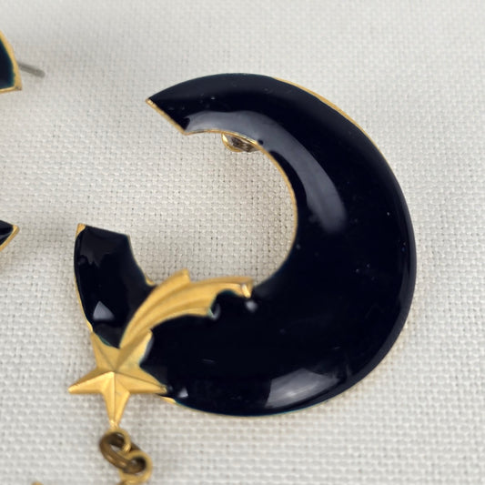 Vintage Gold & Navy Moon & Stars Earrings