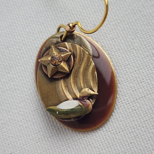 Gold Tone Brown Duck Drop Earrings