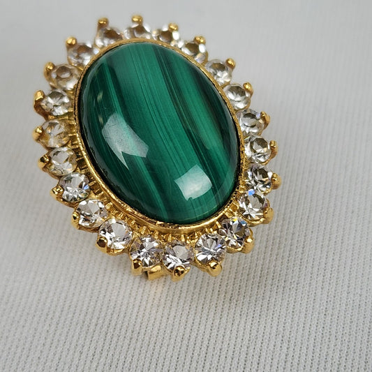 Gold Stud Rhinestones Oval Green Stone Earrings