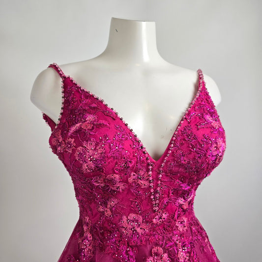 Mori Lee Bright Pink Crystal Bodice Mermaid Tulle Grad Event Gown Size 5/6