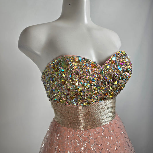 Tiffany Pink Rhinestone Tulle Grad Event Gown Size 4