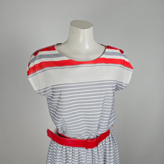 Vintage Koppy Katt White Stripped Fit & Flare Dress Size M/L