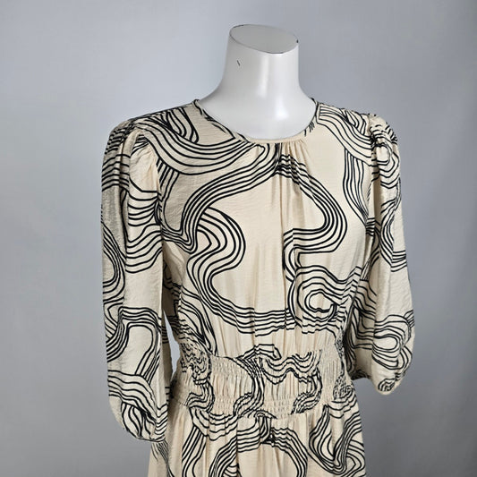 Vero Moda Black & Cream Swirl Print Midi Dress Size L