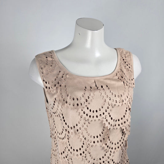 Tata Jolie Cream Faux Suede Laser Cut Scalloped Mini Dress Size L