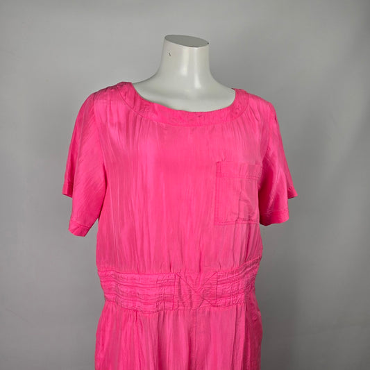 Vintage 80s Too Hot Brazil Pink Silk Short Sleeve Jumpsuit Size L
