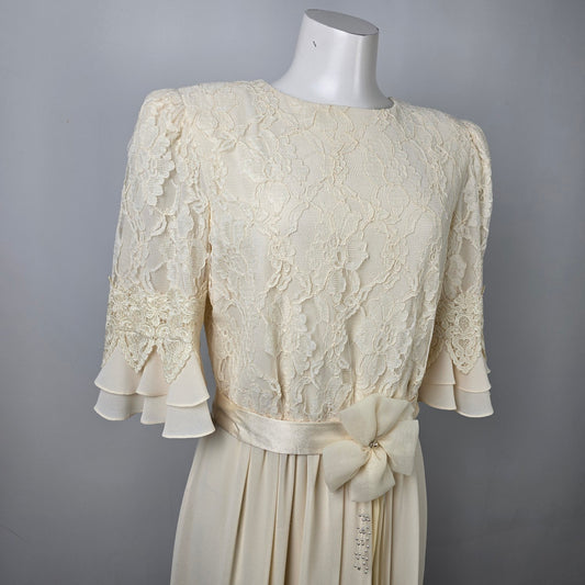 Vintage Ursula Cream Lace Midi Dress Size M