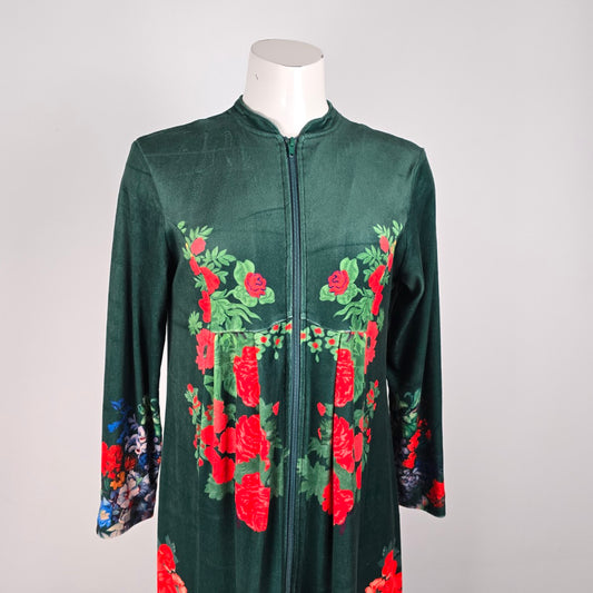 Vintage Cozy House Green Floral Velour Dress Size L