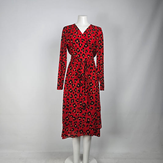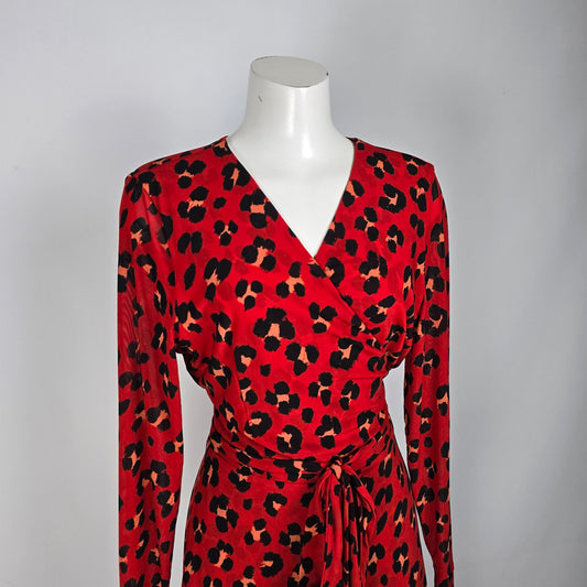 Cabi Siren Red Animal Print Wrap Dress Size L