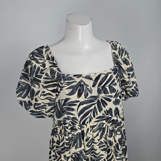 Hudson North Blue Cotton Floral Tiered Knee Length Dress Size L