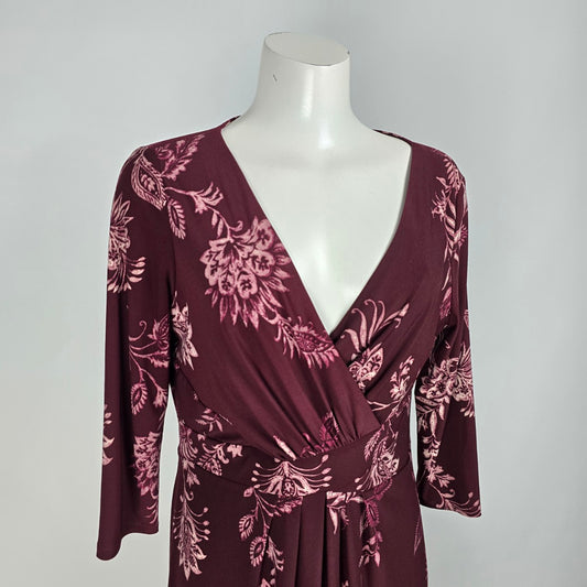 Chaps Burgundy Floral Print Faux Wrap Dress Size L