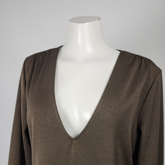 Dynamite Brown Long Sleeve Ruched Knee Length Dress Size L/XL