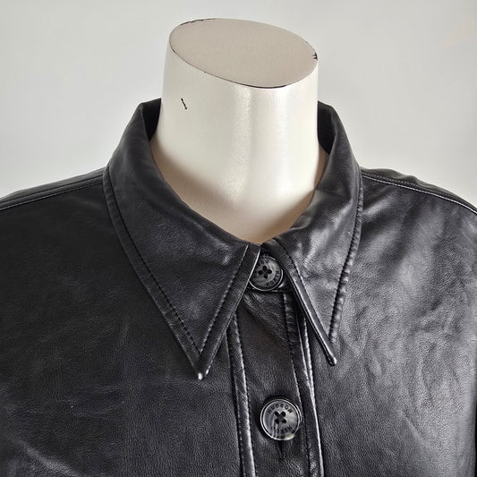 Hudson Black Vegan Leather Button Up Light Jacket Size XL