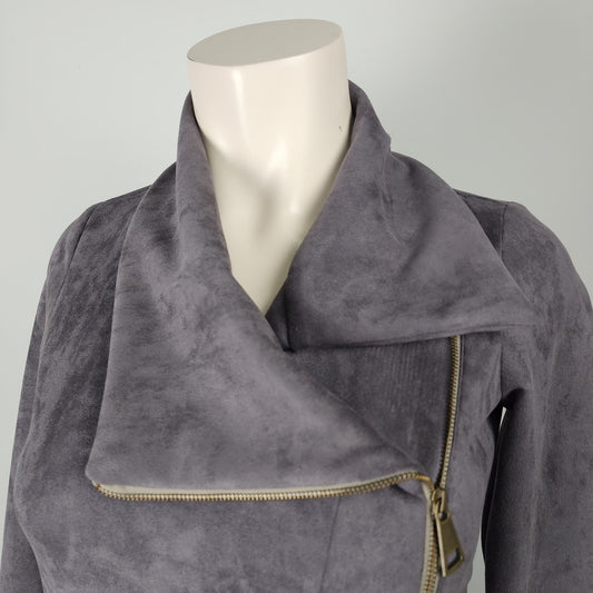 Nounke Grey Faux Suede Asymmetrical Zip Up Light Jacket Size L
