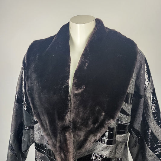Vintage Leather & Suede Fur Trimmed Patchwork Long Jacket Size M/L
