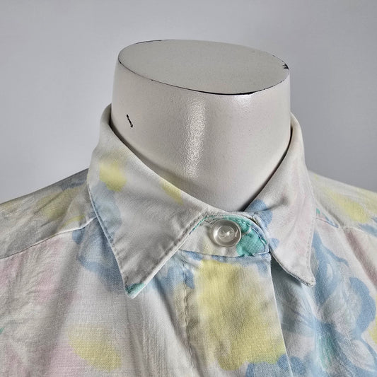 Vintage Sky Path Floral Button Up Short Sleeve Blouse Size L