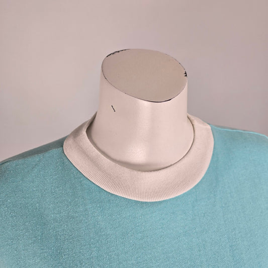 Vintage Royal Knit Wear Cotton Blue Short Sleeve Sweatshirt Size L