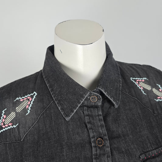 Sherrry Cervi Black Cotton Denim Embroidered Back Button Up Top Size L