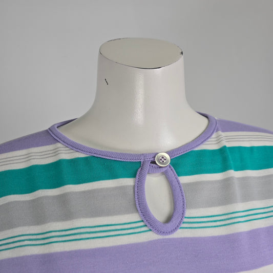 Vintage Kates Teal & Purple Striped Short Sleeve T-Shirt Size L