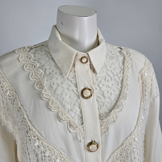 Vintage Jessica White Tassel Western Button Up Blouse Size 14