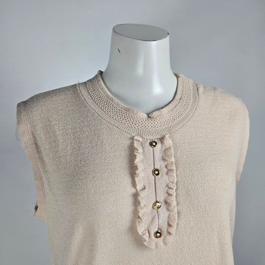 Vintage Cream Knit Beige Ruffle Neckline Knit Top Size L