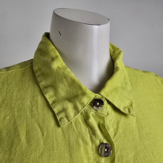Click by Color me Cotton Green Linen Button Up Sleeveless Tunic Top Size L