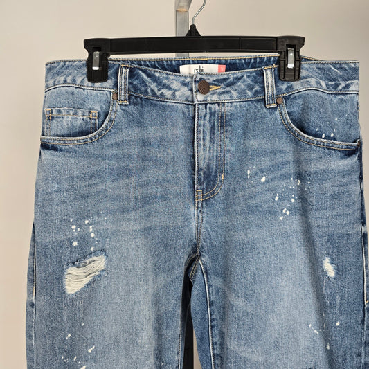 Cabi Button fly distressed midrise straight paint splatter Jeans Size 10