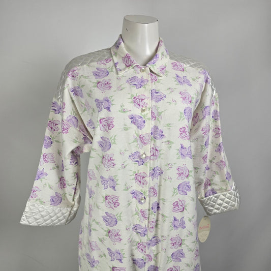 Vintage Bellina Purple Floral Cotton Flannel Jumpsuit Pajamas Size M
