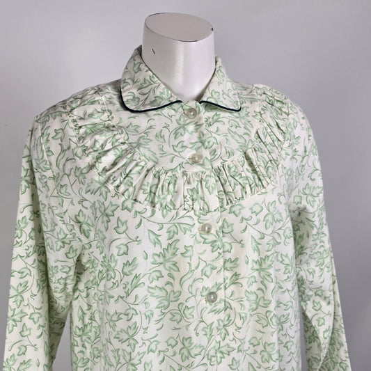 Vintage G2000 Green Floral Cotton Flannel Dress Night Gown Size M