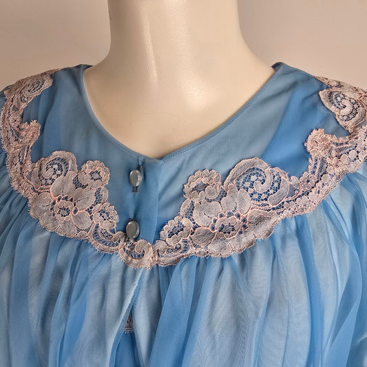 Vintage French Maid Blue Night Gown & House Coat Set Size M