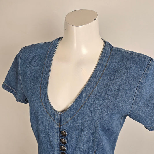Vintage Faded Glory Cotton Denim Long Dress Size 8