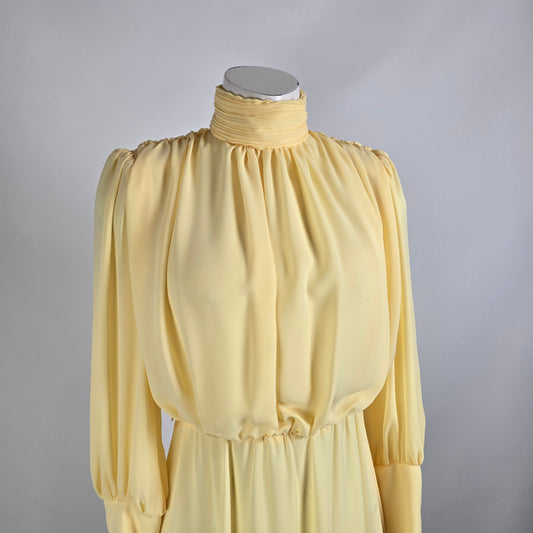 Vintage Yellow Long Sleeve Midi Dress Size S/M
