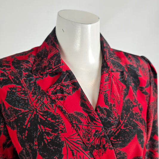 Vintage Red Floral Double Breasted Trench Dress Size M/L